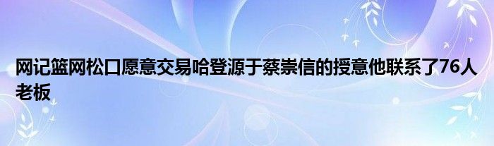 知情人士透露,哈登沒有直接表示希望離隊,只是表達了一些不滿的情緒。在此之前蔡崇信愿意頂薪續約哈登,但那次電話之后籃網轉移了重點。