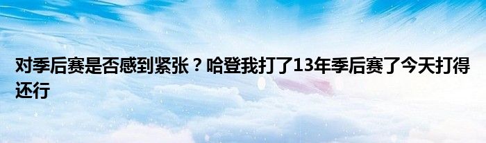 被問(wèn)到對(duì)季后賽是否感到緊張時(shí),哈登說(shuō)道:“我打了13年季后賽了,從個(gè)人角度來(lái)說(shuō)我只想做正確的事情,今天我覺(jué)得自己打得還行。”