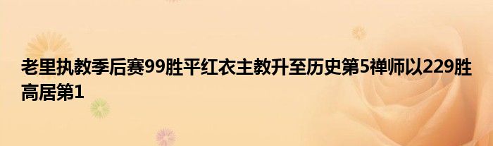 這是76人主帥道格-里弗斯NBA執(zhí)教生涯季后賽第99勝,追平“紅衣主教”奧爾巴赫升至歷史第五。