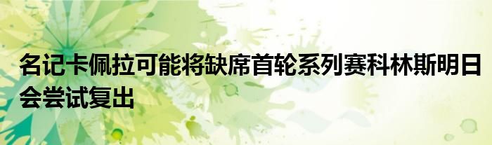 卡佩拉在昨日附加賽中右膝受傷,談到他的傷勢,名記表示:“我被告知,好消息是卡佩拉的傷并不是太嚴(yán)重,但他至少將缺席一周,下周老鷹會為他安排復(fù)查,這意味著卡佩拉至少會缺席首輪前四場比賽,有可能他會因此缺席1-2周,由于老鷹是八號種子將在首輪對陣熱火。所以卡佩拉或許沒法在首輪出場了。”