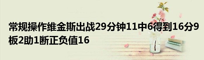 本場比賽,勇士球員維金斯出戰(zhàn)29分鐘,投籃11中6,三分2中1,罰球4中3,得到16分9籃板2助攻1搶斷,僅有1次失誤,正負值+16。