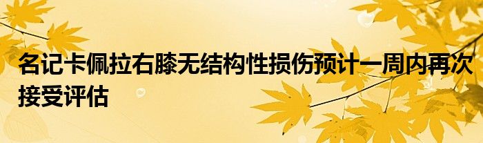 而據(jù)名記報(bào)道,消息人士透露,卡佩拉右膝的核磁共振檢查結(jié)果顯示沒有出現(xiàn)結(jié)構(gòu)性損傷,預(yù)計(jì)將在一周內(nèi)再次接受評(píng)估。