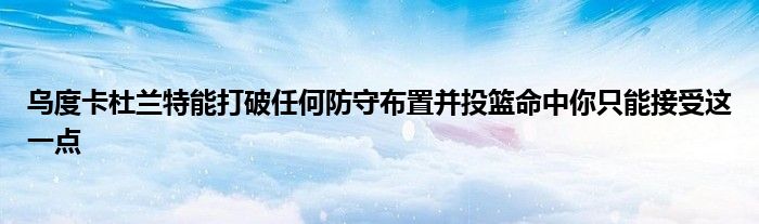 談及杜蘭特,烏度卡說道:“杜蘭特是一個可以破壞你在防守端做任何布置的球員,他能完成艱難的投籃并命中,你必須接受這一點。就像對任何偉大的球員一樣,你必須用另一種眼光去看待他,在比賽中只能試圖去讓他失去平衡。”
