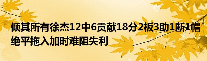 此役,徐杰替補出戰33分59秒,12投6中,拿下18分2籃板3助攻1搶斷1封蓋。