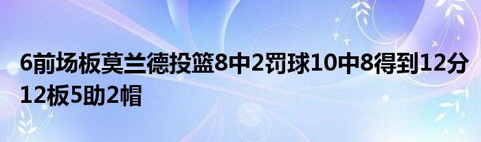 他出場29分鐘,投籃8中2、罰球10中8,得到12分12籃板5助攻2蓋帽。