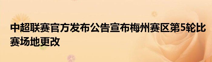 北京時間6月18日,中超聯(lián)賽官方發(fā)布公告,宣布梅州賽區(qū)第5輪比賽場地更改。