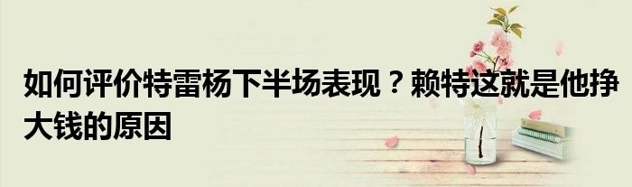賽后,隊(duì)友德朗-賴特在接受采訪時談到楊下半場的表現(xiàn):“這就是他能掙到大錢的原因。”