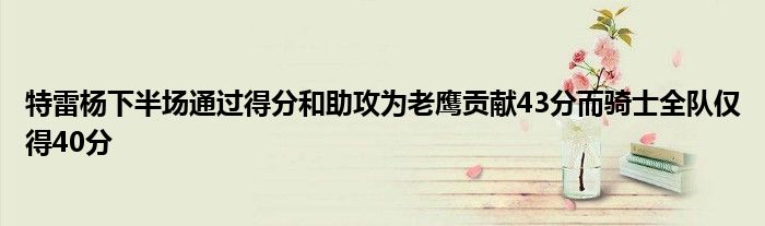 本場下半場,特雷-楊14中10,三分7中4,得到32分5助攻,通過得分+助攻為老鷹貢獻了43分,而騎士全隊下半場僅得40分。