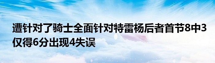 首節比賽,特雷-楊打滿,但他攻防兩端都被騎士瘋狂針對,騎士進攻端所有進攻都找特雷-楊,防守端對位換防只給單挑機會,特雷-楊首節8投3中,三分2中0,僅得6分,送出3助攻但是也出現了4個失誤。