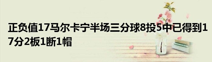 截至半場,騎士前鋒馬爾卡寧登場15分鐘,10投6中,已得到17分2籃板1搶斷1蓋帽,正負(fù)值為全場最高的+17!