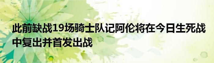 4月16日訊 據騎士隨隊記者Chris Fedor報道,球隊中鋒賈萊特-阿倫將會在今日對陣老鷹的生死戰中迎來復出并首發出戰。
