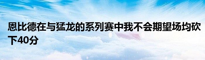 談到季后賽首輪與猛龍的系列賽,恩比德表示:“在這個系列賽中,我不會期望場均砍下40分,他們不會讓我一直拿到球,但是我絕對不會對此感到沮喪,我會義無反顧地相信我的隊友,做出最正確的決定。”