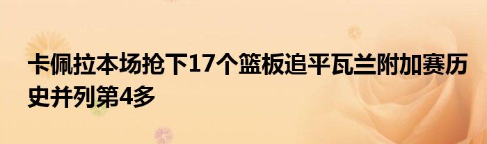 據統計,卡佩拉單場搶下的17個籃板也追平了瓦蘭丘納斯,并列排在附加賽歷史第4多。