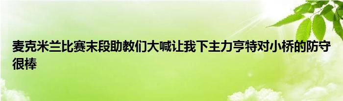 另外,麥克米蘭還表示:“在比賽末段,助教們向我大喊,要我把主力換下。”