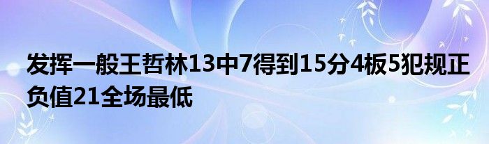 上海隊中鋒王哲林今日的發揮相比八強戰略顯一般,出戰30分57秒,投籃13中7,三分1中0,罰球2中1,得到15分4籃板2助攻,另有2次失誤5個犯規,正負值-21全場最低。