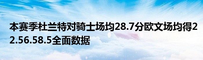 杜蘭特出戰了對陣騎士4場比賽中的3場,在場均39.1分鐘的出場時間里,得到了28.7分5籃板5.7助攻和1.7蓋帽的數據。