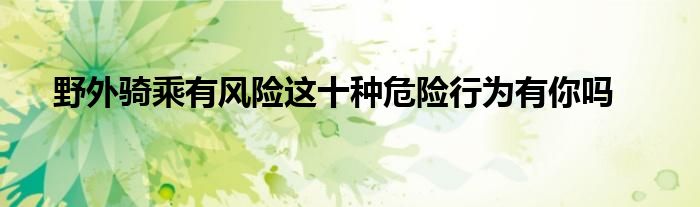 野外騎乘有風險,這十種危險行為有你嗎?
