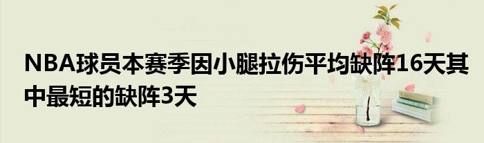 據記者Jeff Stotts跟進報道,本賽季NBA球員因小腿拉傷而平均缺陣的天數為16天,其中缺陣的中位數為17天,最短的為3天。