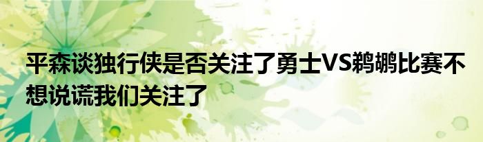 談到獨行俠是否關注了勇士與鵜鶘的比賽時,平森表示:“我不打算對你說謊。我們確實關注了。”