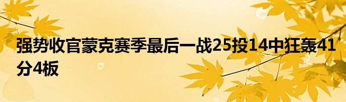 此役,蒙克25投14中,其中三分球14中7,另外罰球6中6,砍下生涯新高的41分,此外還有4籃板1助攻進賬,拿到生涯新高后,蒙克加時賽并未登場。