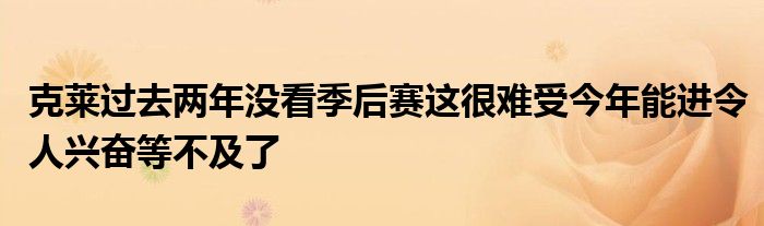 談到即將到來的季后賽,克萊透露自己沒有看過去兩個賽季的季后賽,因為這很令人難受,他說道:“我等不及了,進季后賽令人興奮,光是想到這件事就讓人欣喜若狂。”