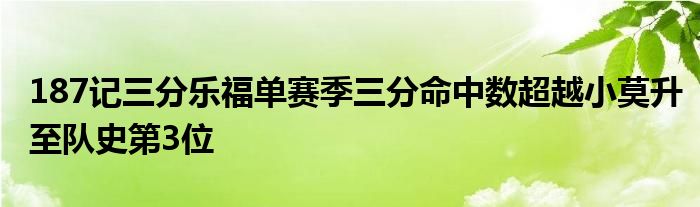 據騎士官方統計,樂福本賽季命中了187記三分,單賽季三分命中數超越莫-威廉姆斯,位列隊史第3位。