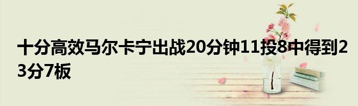 騎士球員馬爾卡寧本場比賽表現高效,他全場比賽出戰20分39秒,11投8中,三分7中4,罰球3中3,得到了23分7籃板,正負值達+33,幫助球隊拿下了常規賽最后一場勝利。