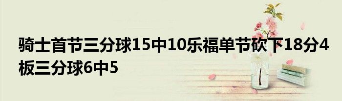 首節比賽,騎士全隊三分球15投10中,其中樂福一人三分6投5中、罰球5中3砍下18分4籃板。