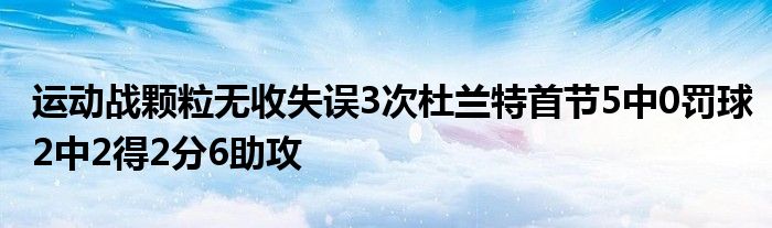 首節比賽,杜蘭特打滿12分鐘5投0中,三分2中0、罰球2中2,得到2分2籃板6助攻1搶斷,出現3次失誤。