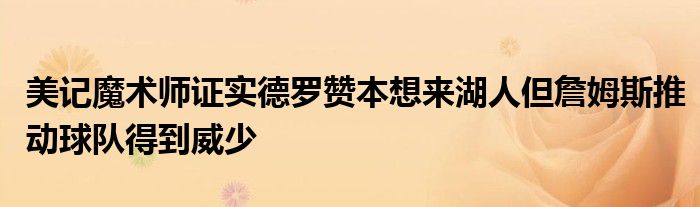 魔術師本周透露,德羅贊的經紀人告訴他,他的客戶想為湖人隊效力。魔術師說,盡管如此勒布朗還是推動球隊得到更昂貴的威斯布魯克。