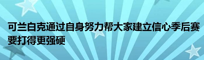 對于本賽季球隊的蛻變,可蘭白克認為:“球隊走到現在這一步,包括夏天李指導的到來和管理層到教練員的改變都非常大。雖然球隊看起來打球的人比較多,但季后賽經驗也比較欠缺。我們盡可能做好細節,打得更加強硬一些,力拼每場球,這也是上海隊的宗旨。”