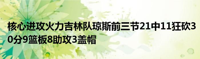 前3節戰罷,吉林隊的外援瓊斯21投11中,三分球8中3,已經砍下30分9籃板8助攻3蓋帽的全面數據。