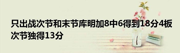 值得一提的是,此役庫明加只出戰了第二節和第四節的比賽,他單節先后貢獻13分和5分,幫助球隊力克對手。