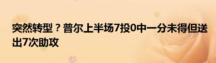 上半場(chǎng)比賽,普爾手感冰涼,7中0中一分未得,但是他送出7次助攻,距離自己上一場(chǎng)創(chuàng)造的生涯紀(jì)錄11次僅差4次。