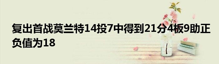 灰熊球星莫蘭特本場(chǎng)比賽迎來(lái)復(fù)出,他全場(chǎng)比賽出戰(zhàn)26分37秒,14投7中,三分3中2,罰球7中5,得到了21分4籃板9助攻的數(shù)據(jù),正負(fù)值為+18。