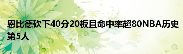 據(jù)統(tǒng)計,恩比德本場比賽命中率達(dá)82.4%,他也成為歷史上第5位以至少80%的命中率得到至少40分20籃板的球員。