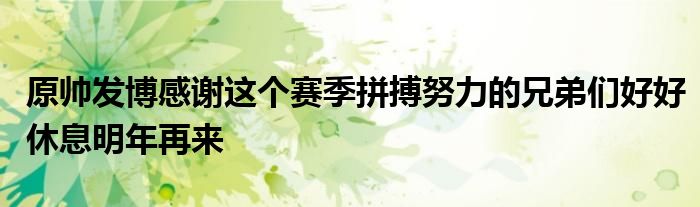 賽后,山西隊球員原帥發博寫道:“感謝這個賽季為這支球隊拼搏努力的兄弟們!好好休息,明年再來 。”