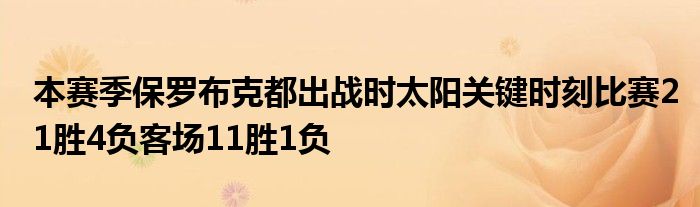 此外,本賽季客場出現關鍵時刻的比賽中,太陽戰績為11勝1負。