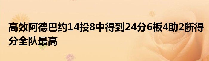 本場比賽,熱火隊球員阿德巴約有著出色的發揮,他首發出場32分51秒,14投8中,罰球10中8,得到全隊最高的24分,還有6籃板4助攻2搶斷的數據,正負值為+6。