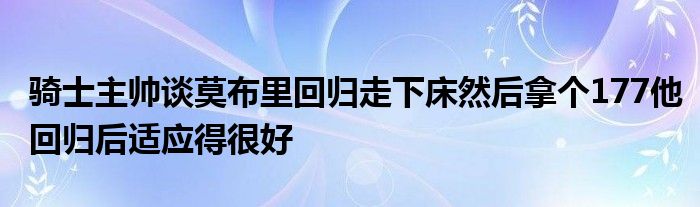 談到本場復出的莫布里時,他稱贊道:“他很棒,走下床然后拿了個17+7,在防守端影響比賽、蓋帽、抓籃板。我認為他重新融入球隊時適應得很好。”此前莫布里因腳踝傷勢缺席了5場比賽。