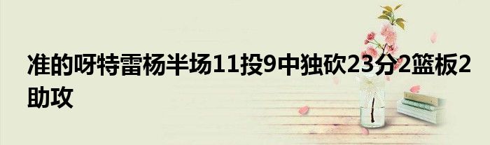 上半場,特雷-楊表現出色,他出戰19分鐘,11投9中,其中三分球5投3中,另外罰球2罰2中,砍下23分2籃板2助攻1搶斷。