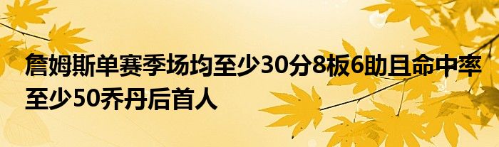 據(jù)統(tǒng)計,NBA歷史上共有兩名球員在單賽季內(nèi)場均可以得到至少30分8籃板6助攻,且命中率至少50%:本賽季的詹姆斯和1988-89賽季的喬丹。