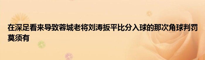 在深足看來,導致蓉城老將劉濤扳平比分入球的那次角球判罰莫須有。而圖像資料顯示,成足進球前,其替補球員木塔力甫·依明卡日將球射出底線,球并未碰到深足任何1名隊員身體。于是深足場上及替補席上的多名成員紛紛找到裁判員討公道。比賽在紛亂之中中斷了8分鐘左右。