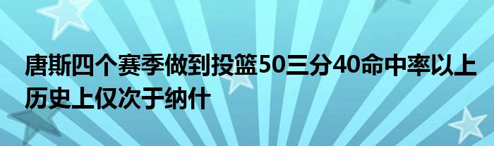 值得一提的是,截至目前,這是唐斯第四個賽季能得到這樣的數據:投籃命中率50%以上,三分命中率40%以上。NBA歷史上僅有納什做到過更多的次數,其他球員沒有超過兩次。