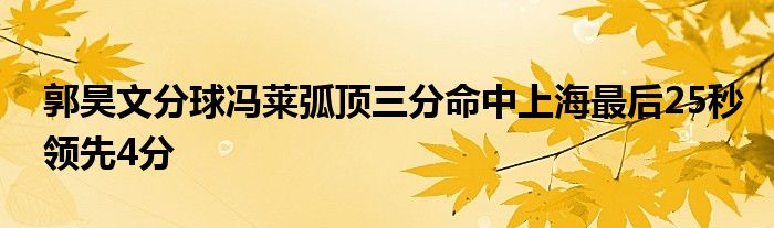 郭昊文分球馮萊弧頂三分命中上海最后25秒領(lǐng)先4分