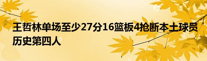 據統計,憑借本場比賽的表現,王哲林成為歷史第四位單場至少取得27分16籃板4搶斷的本土球員。其余的三位達成此數據的球員分別是易建聯、姚明和王治郅: