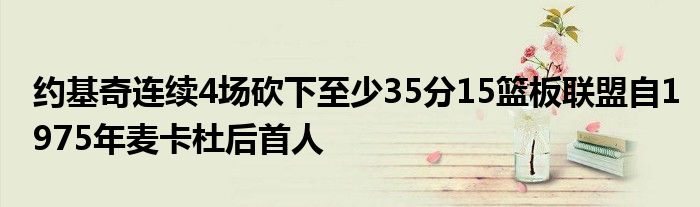 數據顯示,約基奇已連續4場比賽拿下至少35分15籃板,為聯盟自1975年鮑勃-麥卡杜以來首位達成此成就的球員。