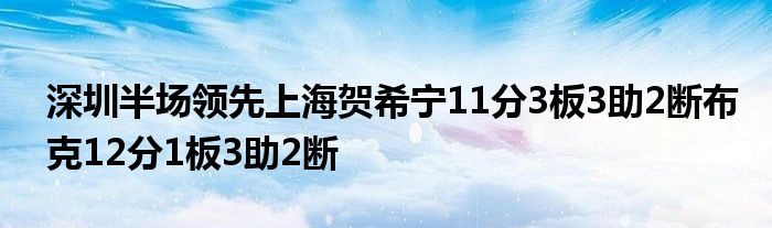 在上半場的比賽里,深圳隊球員賀希寧和布克有著不錯的發揮。賀希寧出戰16分36秒,8投4中,三分3中1、罰球2中2,得到11分3籃板3助攻2搶斷。布克出場15分11秒,8投5中得到12分1籃板3助攻2搶斷。