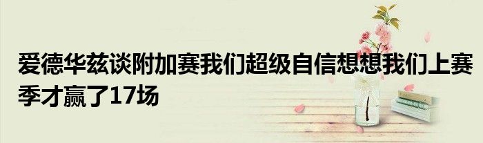 談到球隊(duì)打附加賽的心態(tài),愛德華茲表示:“我們超級自信,我們喜歡現(xiàn)在所處的位置,唯有感謝。想想去年我們好像才贏了17場,我現(xiàn)在很開心。”