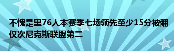 本場比賽,76人最多時曾領先對手15分,但最終依舊輸球。據統計,本賽季至今76人已有7場比賽在領先至少15分后慘遭翻盤,僅次于尼克斯的8場,排名聯盟第二。